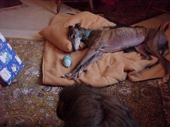 Ginger, the greyhound, relaxes after her day at the spa. She enjoys her days out with the girls.